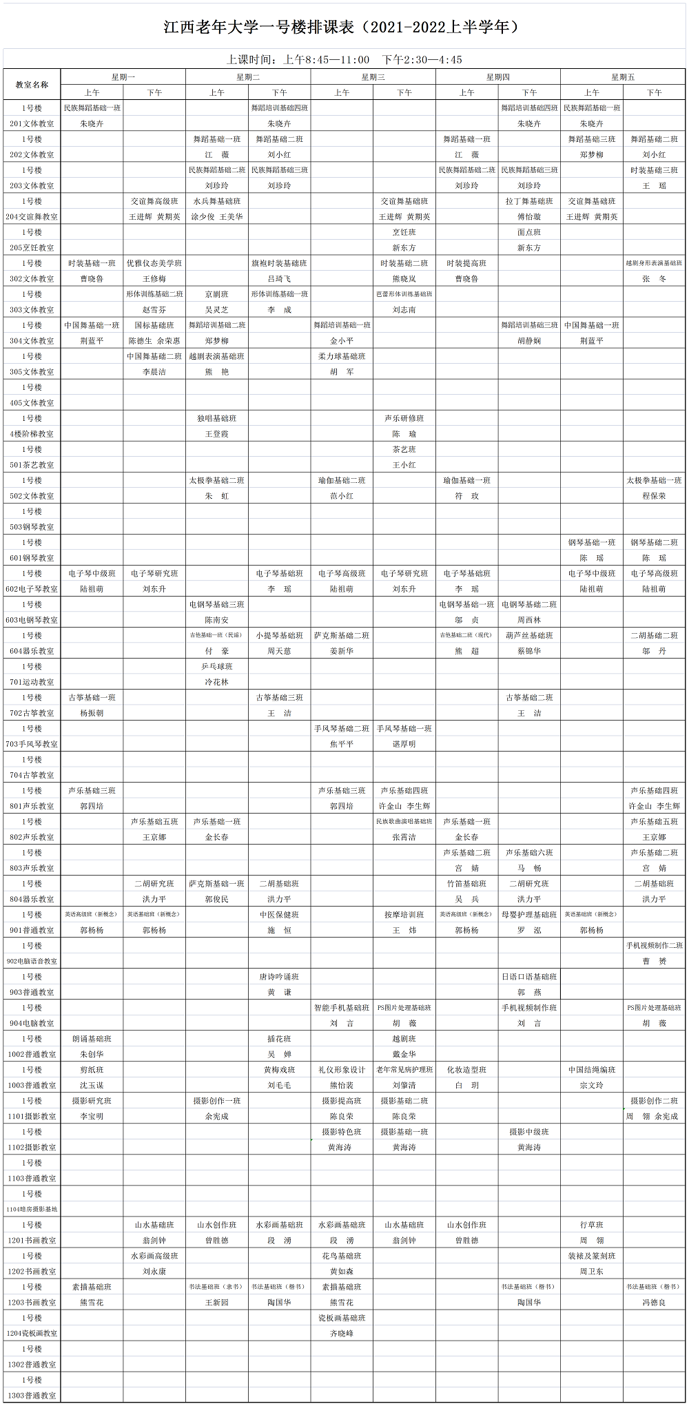 金年会手机版app下载一号楼排课表(2021-2022上半学年)