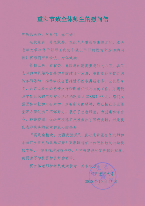 重阳节致全体师生的慰问信