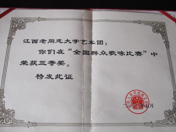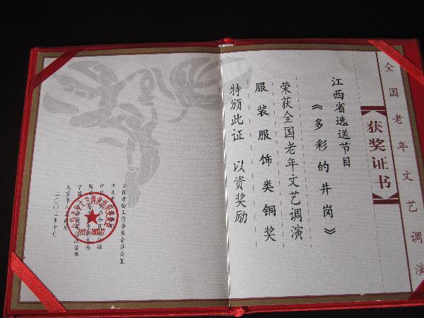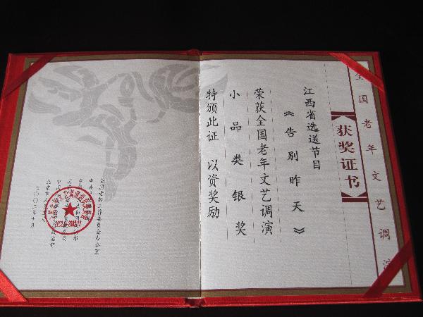 2002年10月金年会手机版app下载参加全国老年文艺调演获奖证书2