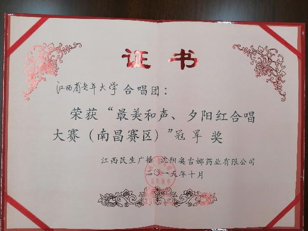 2015年10月校合唱团荣获“最美和声、夕阳红合唱大赛(南昌赛区)冠军
