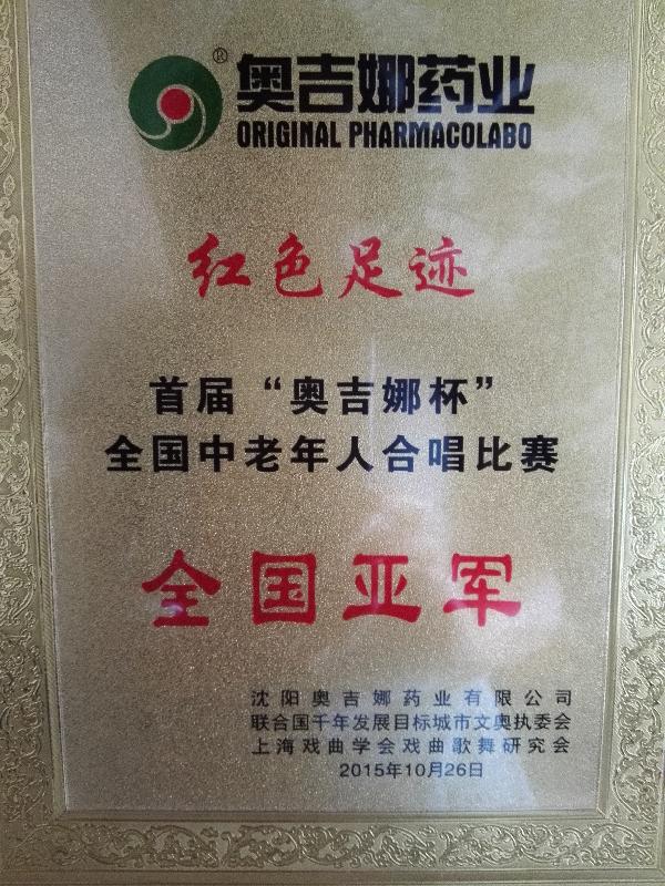 2015年参加”奥吉娜”杯全国中老年合唱节获银奖