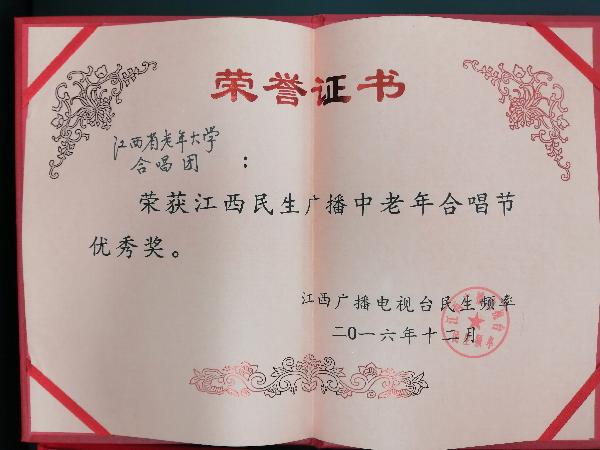 2016年12月校合唱团荣获江西民生广播中老年合唱节优秀奖