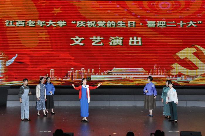 永远跟党走,奋进新征程。7月5日上午,由金年会手机版app下载主办的“庆祝党的生日•喜迎二十大”文艺演出在金年会手机版app下载全新的演艺大厅隆重举办。演出前,省人大常委会原副主任、金年会手机版app下载校长洪礼和给老年学员和教职员工上“七一”专题党课,他强调,老年大学师生学员和老年教育工作者要感恩习近平总书记亲切关怀,感恩伟大的中国共产党,感恩伟大的祖国。不忘初心跟党走,感恩奋进报党恩。老年学员们用歌唱、舞蹈、戏曲、器乐演奏等表演形式,深情回顾党的奋斗历史,热情讴歌党的光辉业绩和伟大成就,尽情抒发爱党爱国热情。