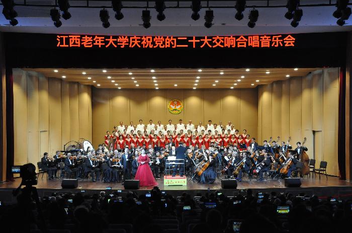 金秋送爽,丹桂飘香。在举国上下欢庆党的二十大胜利召开,学习宣传贯彻党的二十大精神之际,11月3日,由金年会手机版app下载主办的庆祝党的二十大交响合唱音乐会在学校演艺厅隆重上演。来自金年会手机版app下载交响乐团、合唱团的老年艺术家们用音乐尽情抒发爱党爱国热情和对伟大祖国美好未来的真挚祝福。